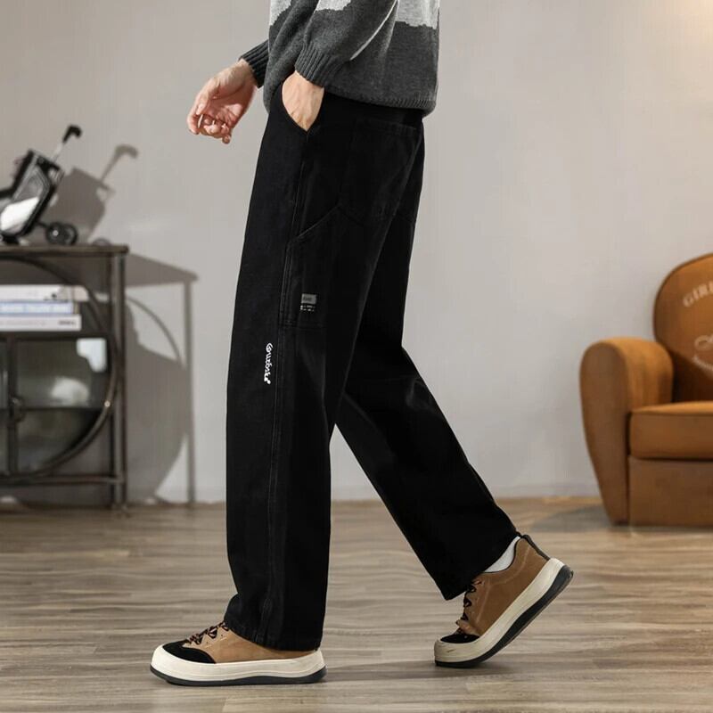 送料無料 Semir ジーンズ メンズ ベルベット 冬 ルーズ ストレート ブラック レトロ パーソナライズ 刺繍 ジーンズ レッド ウィンター 冬物 AE1212777762157934369