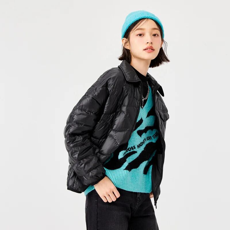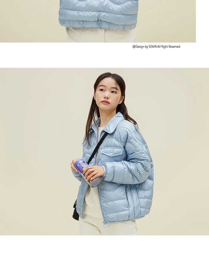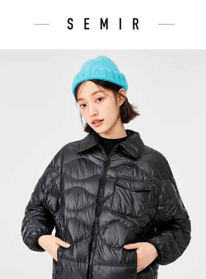 送料無料 Semir ダウンジャケット女性薄型ラペル 2021 冬シンプルな無地ルーズ通勤ダウンジャケット ウィンター 冬物 ソリッドカラー AE1212777763956711091