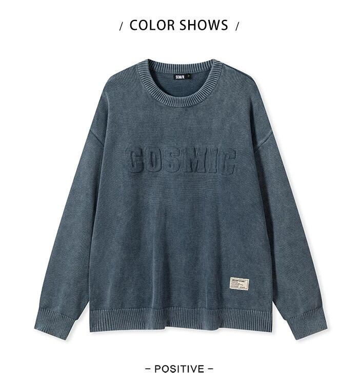 送料無料 Semir プルオーバーセーター男性冬レトロカラーレターエンボスセーター毎日の通勤ルーズニットセーター ウィンター 冬物 AE1212777733518095649
