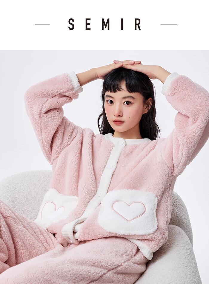 送料無料 Semir パジャマ女性両面 Comtable ベルベット暖かい甘いルーズ長袖ズボン 2 点セット ロング 大人ガーリー スウィート キュート カジュアル AE1212777741695858645