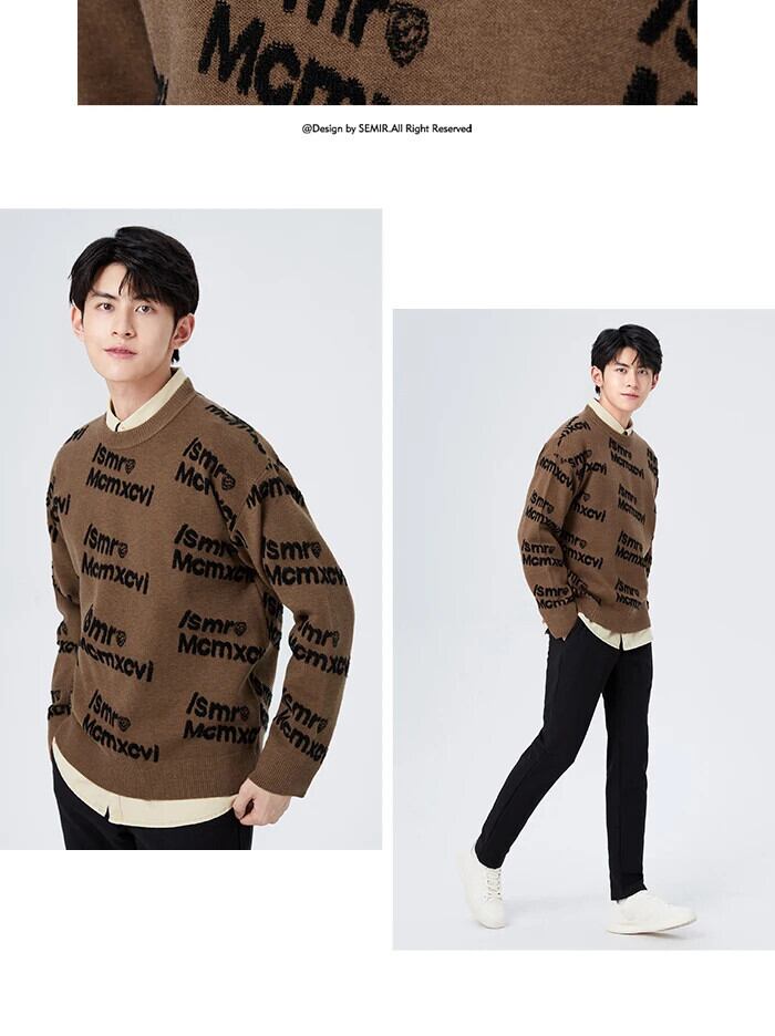 送料無料 Semir プルオーバー セーター男性冬フルレター ジャカード織り目加工セーター緩いセーター レッド ウィンター 冬物 AE1212777798713349126