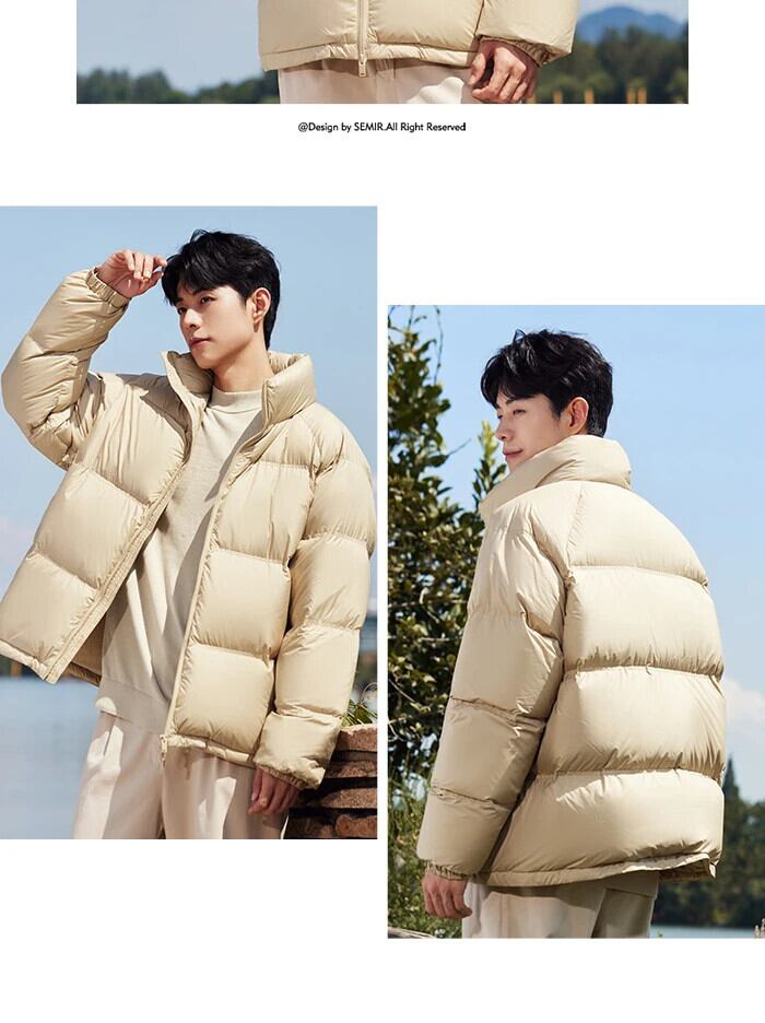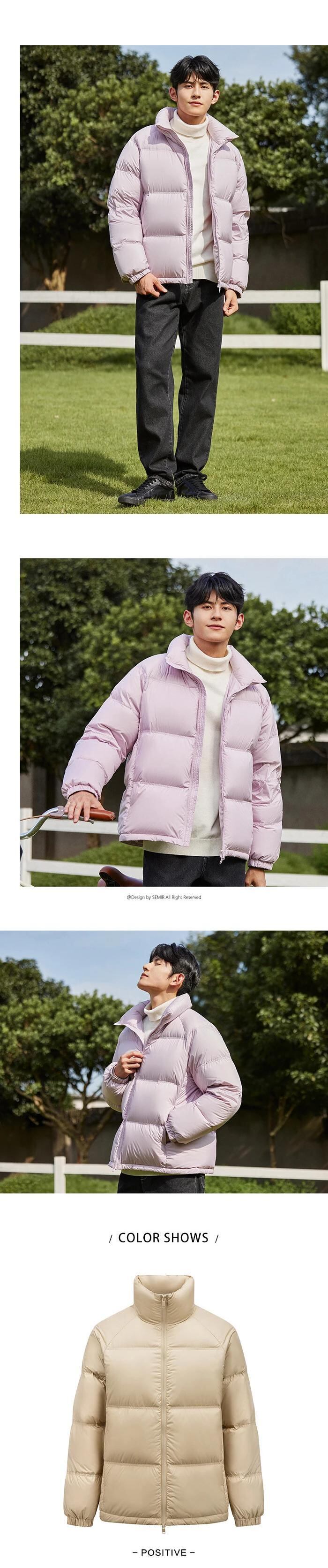 送料無料 Semir ダウンジャケット男性 2023 冬ミニマリストソリッドカラー Comtable 暖かいトレンディなルーズジャケット ウィンター 冬物 AE1212777742318393431