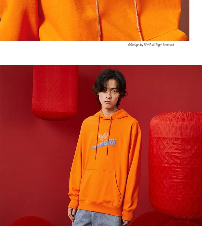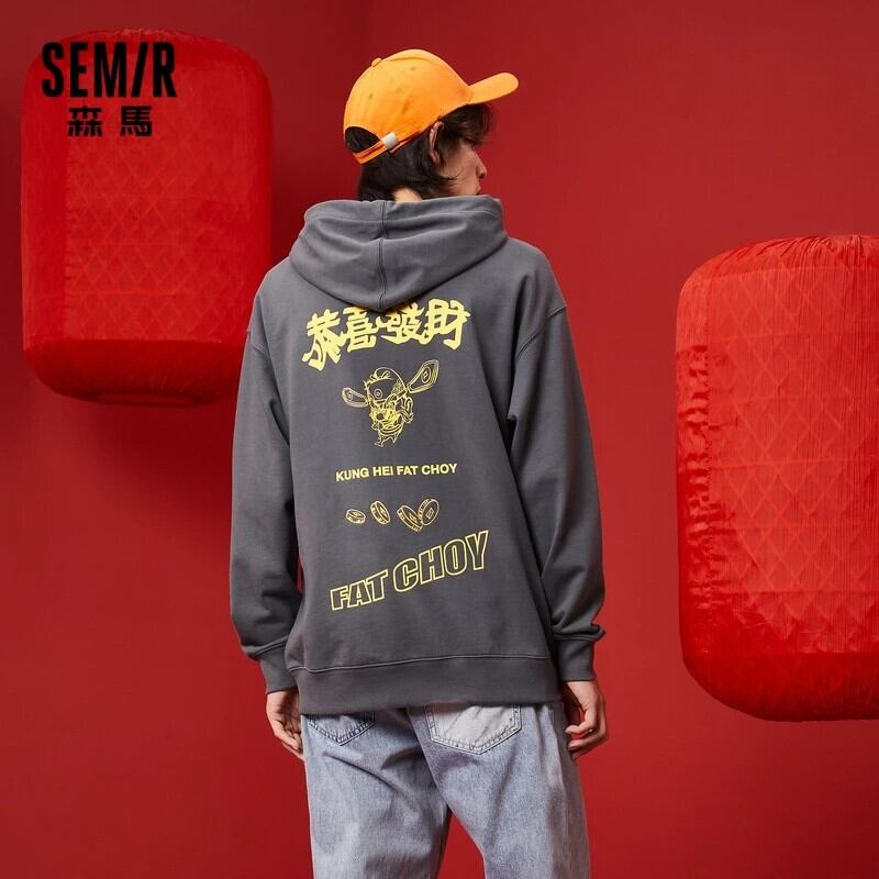 送料無料 SEMIR トレーナー男性 2021 春ルーズフード付きパーカートレンディな漢字印刷人格トップス年服 スプリング 春物 AE1212777723488707427
