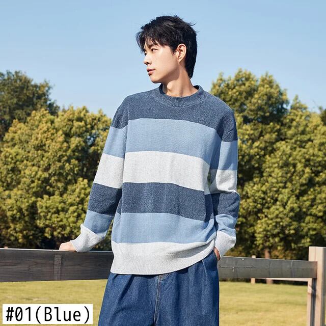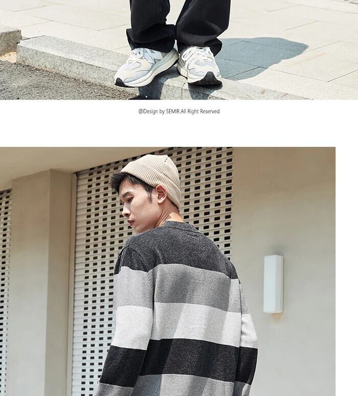 送料無料 Semir セーター男性ルーズ 2022 冬ニットシンプルな毎日の通勤カラーコントラストストライプセーター男 ウィンター 冬物 AE1212777773795037542