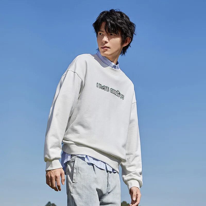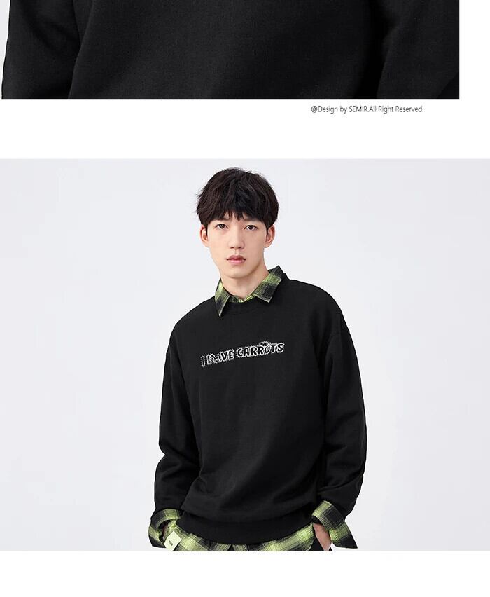 送料無料 Semir トレーナーメンズラウンドネック 2022 春クラインブルー刺繍ワイドバージョンルーズコットントップメンズパーカー スプリング 春物 Oネック AE1212777742393017105