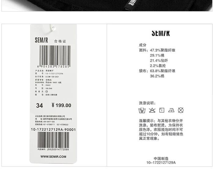 送料無料 Semir パンツ男性冬 Clic ベーシックソリッドカラー絶妙な有能なビジネス通勤スタイルフィットズボン ウィンター 冬物 AE1212777737770816229