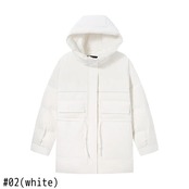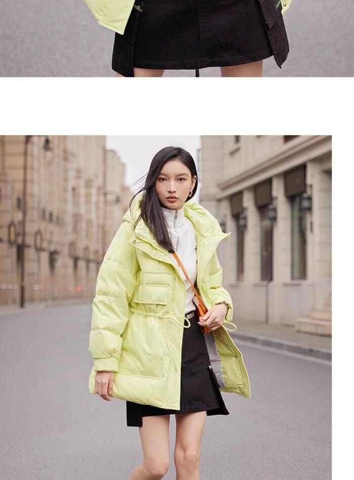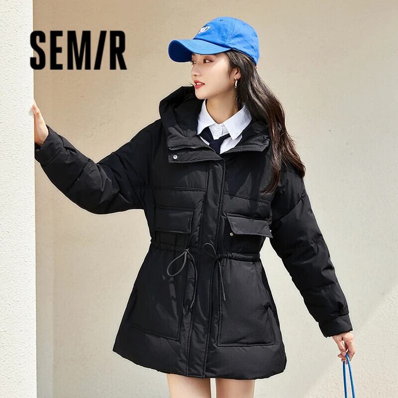 送料無料 Semir ダウンジャケット女性ミッドレングスホワイトダックダウンルーズ巾着痩身 2023 冬のウエストフード付き厚いダウンジャケット ウィンター 冬物 AE1212777756432163179