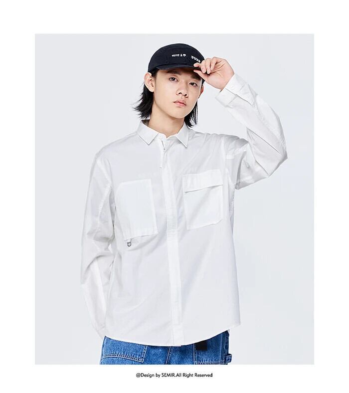 送料無料 Semir 長袖シャツ男性ハンサム通勤文学スタイル 2023 秋ルーズラペル白シャツ ロング ホワイト オータム 秋物 AE1212777760486901674