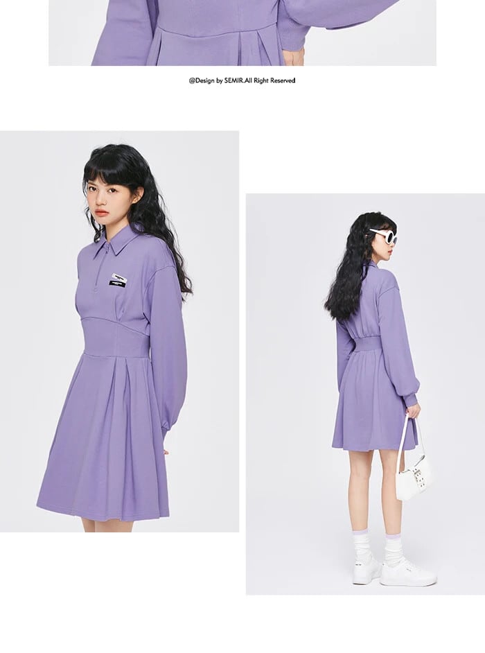 送料無料 Semir ドレス女性長袖ウエストラペルドレス 2022 秋スイートクールアルファベットニットドレス ロング 大人ガーリー スウィート キュート カジュアル AE1212777768383791639