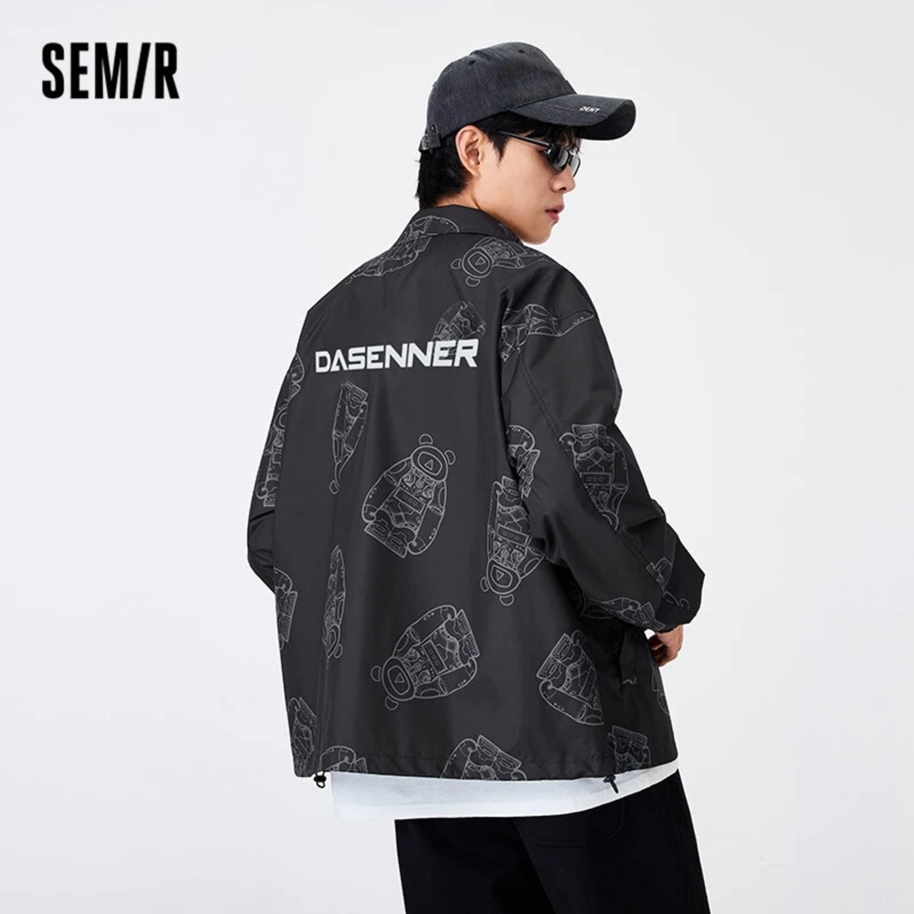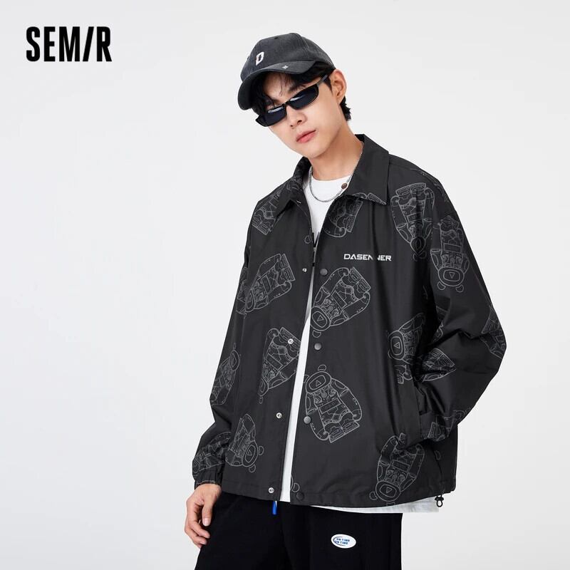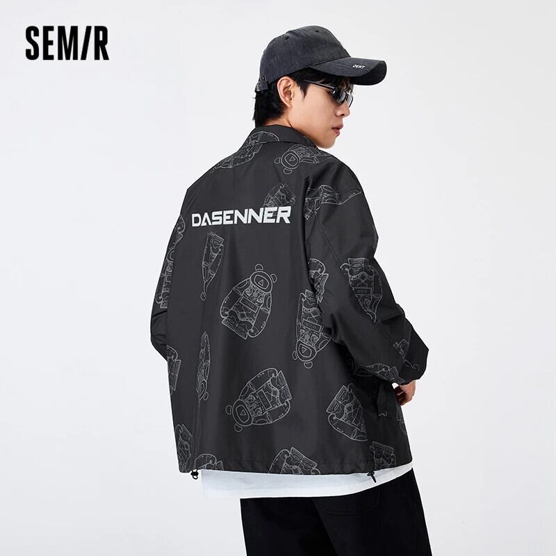 送料無料 Semir ジャケット男性ラペル 2021 冬原宿スタイル不規則なプリント潮ルーズボーイズジャケット かわいい ウィンター 冬物 AE1212777714423453667