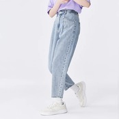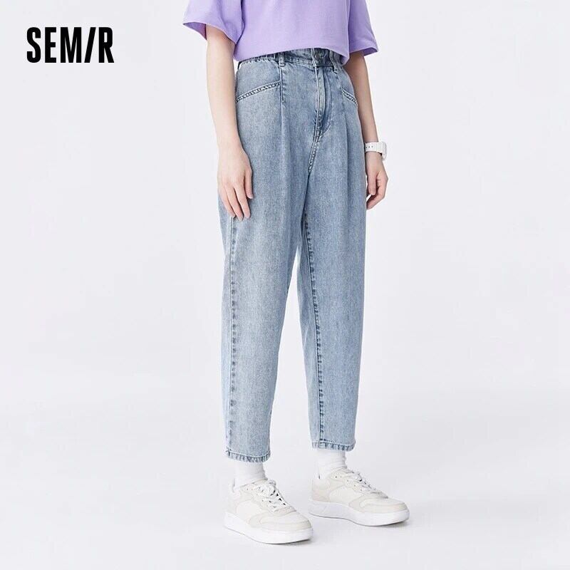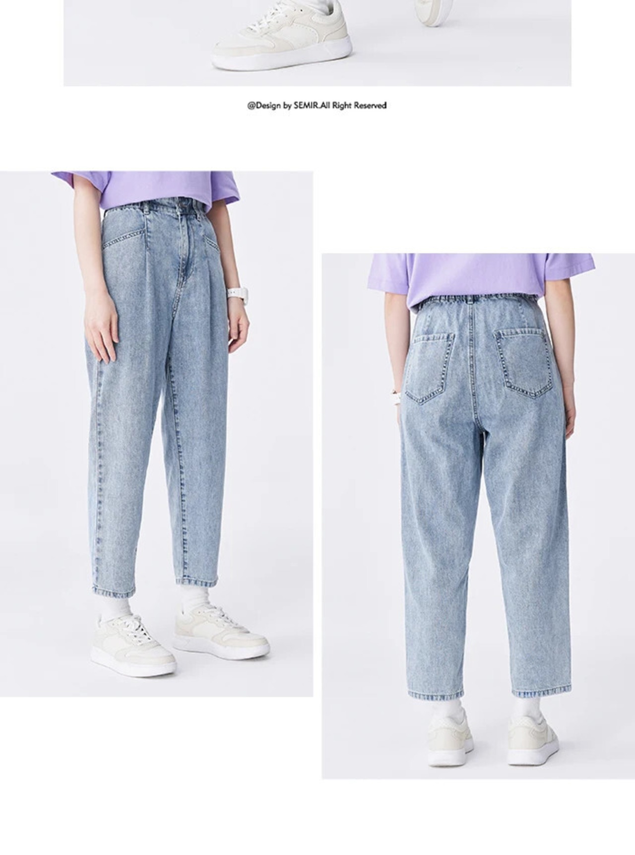 送料無料 Semir ジーンズ女性バドウエスト弾性ウエストジョギング秋純粋な綿レトロテーパード 8 分パンツ レッド コットン エラスティック 伸縮 オータム 秋物 ピュア AE1212777715913420210
