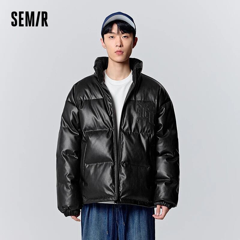 送料無料 Semir ダウンジャケット男性 2023 冬トレンディクール模擬レザーマットルーズジャケット ウィンター 冬物 人工 AE1212777724280141999
