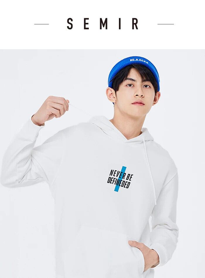送料無料 Semir セーター男性 2023 Comtable フリースオフショルダー冬コントラストレタープリント巾着パーカー ウィンター 冬物 AE1212777745585531307