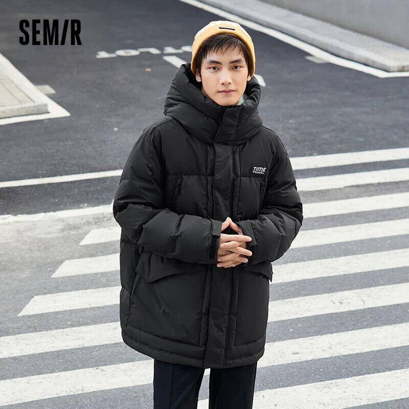 送料無料 Semir ダウンジャケット男性冬コントラストカラーステッチ 2023 フード付きミッドレングス暖かいジャケット ウィンター 冬物 AE1212777717664693549