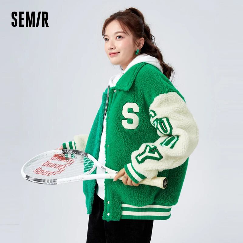 送料無料 Semir ジャケット男性冬トレンディな絶妙な刺繍ルーズコントラストカラー模造シェルパジャケット レッド ウィンター 冬物 AE1212777715356661201