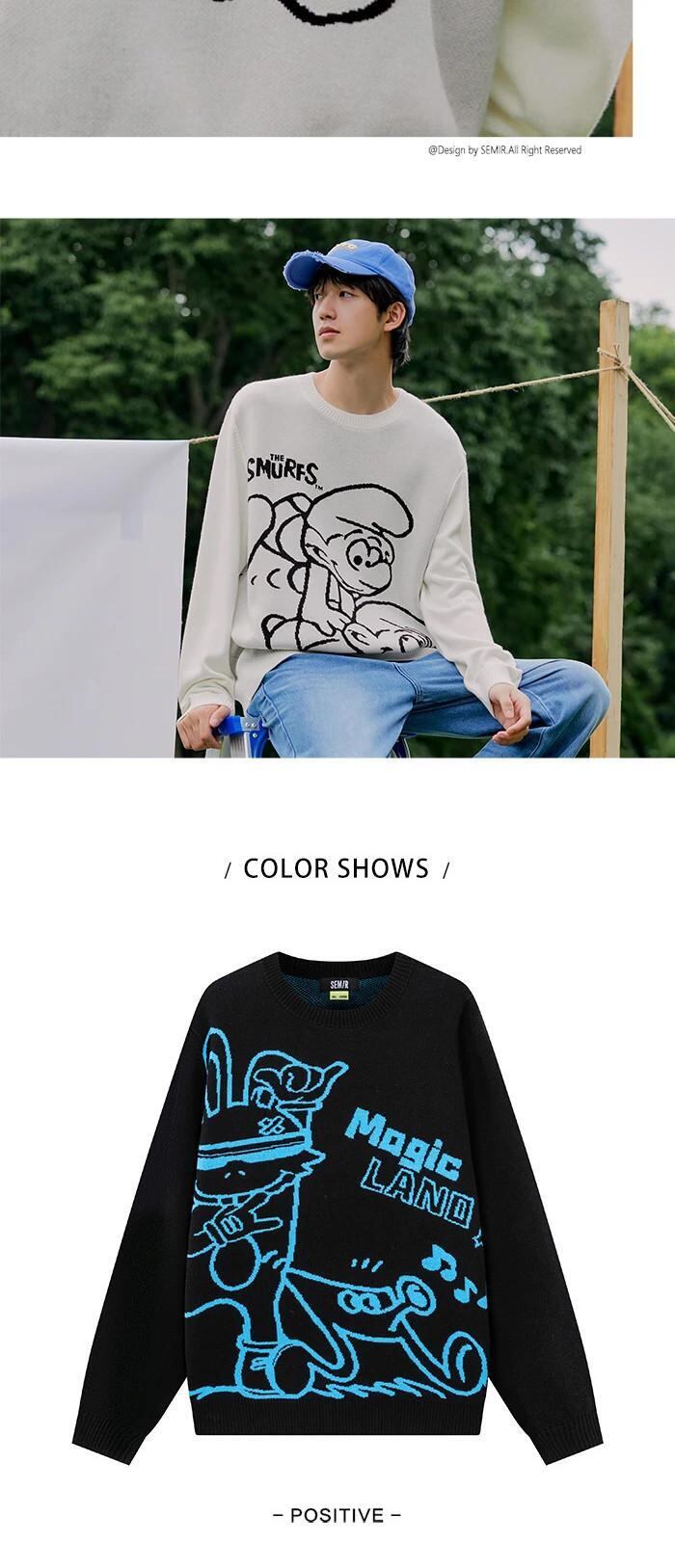 送料無料 Semir 2023 男性ニット秋冬漫画ジャカードセーターゆるい人格トレンディなヒットカラーニットプルオーバー男性 オータム 秋物 ウィンター 冬物 AE1212777797728027661