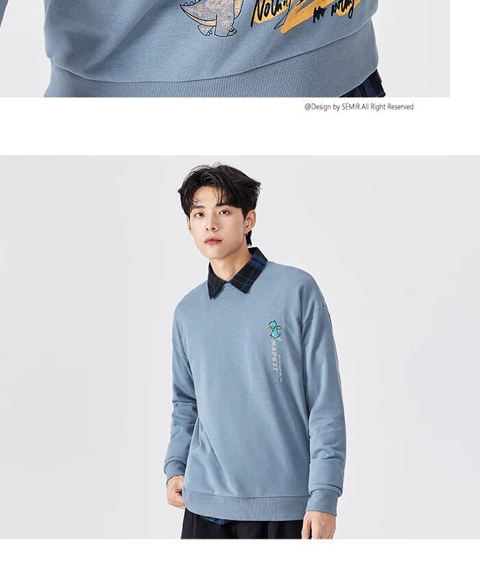 送料無料 SEMIR セーター男性秋小さな恐竜クリエイティブ O ネックジャケット男性 2021 秋のトレンド緩い服 オータム 秋物 Oネック AE121277776714070748