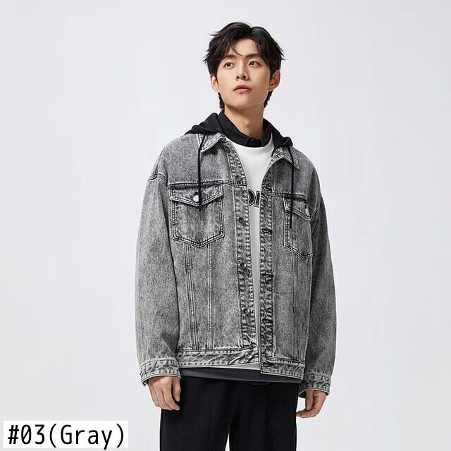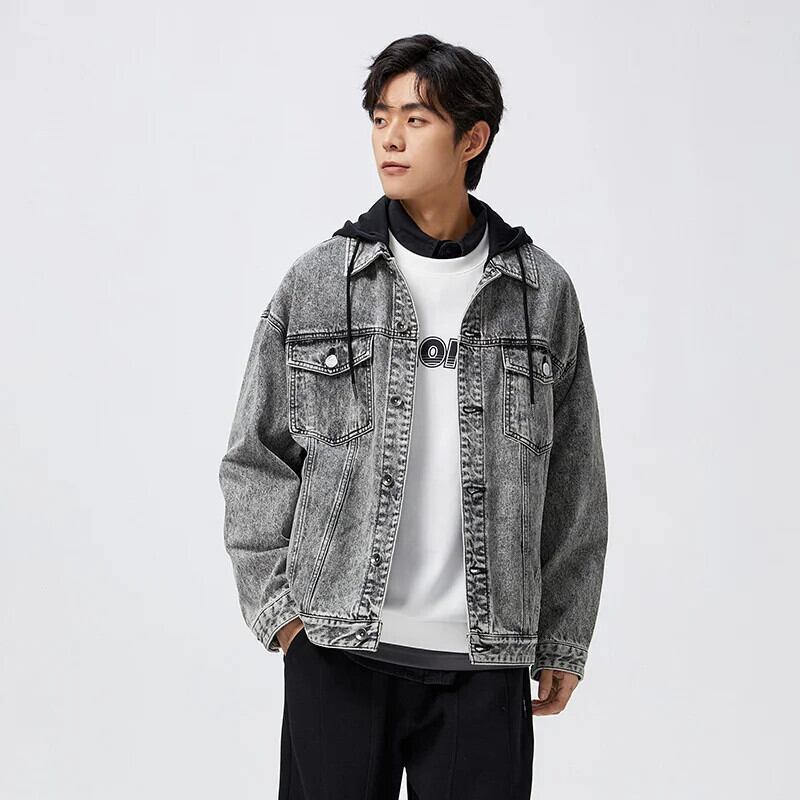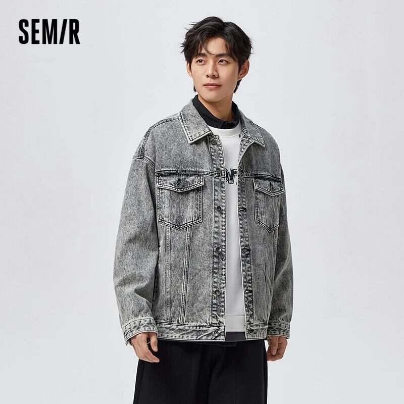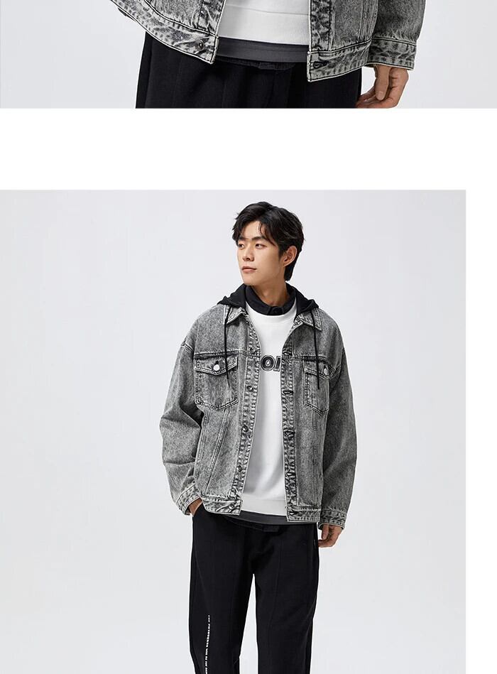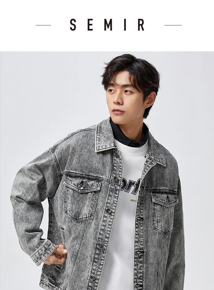 送料無料 Semir デニムコートメンズ春 2023 クールスタイルレトロストリートキャンパスフェイクツーピースフード付きルーズジャケット スプリング 春物 AE1212777751635143508