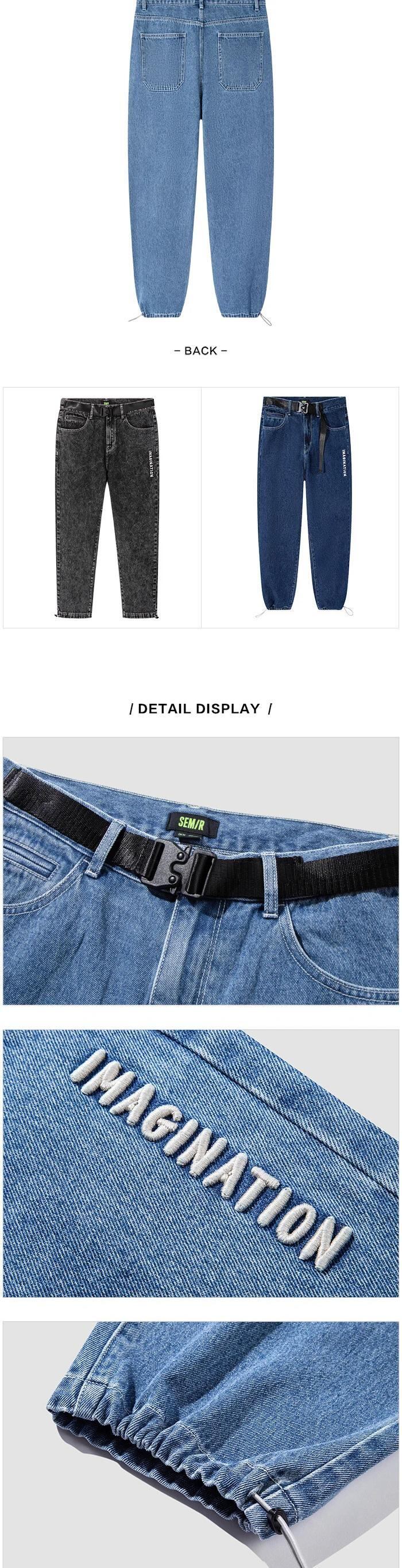送料無料 Semir ジーンズ男性 2021 秋ルーズレター刺繍メンズストリートレトロストレートズボン オータム 秋物 AE121277773673789706