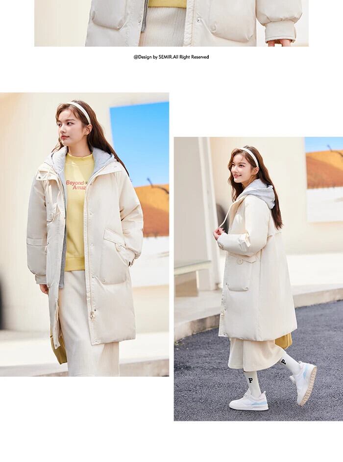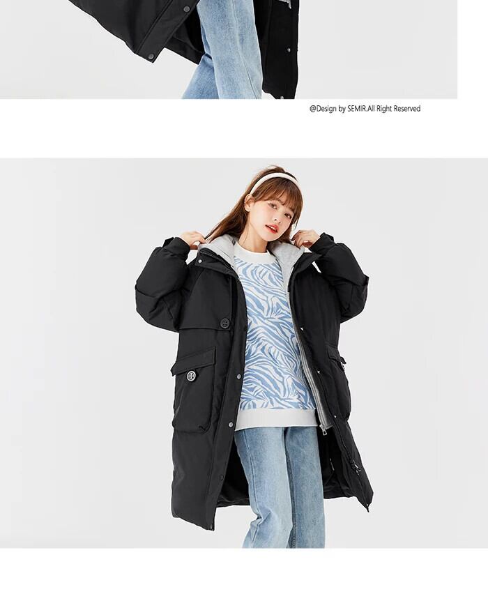 送料無料 Semir ダウンジャケット女性ロングフード付きスプライシング 2023 冬コントラストカラーオーバーサイズ厚いコート ウィンター 冬物 AE1212777748565942711