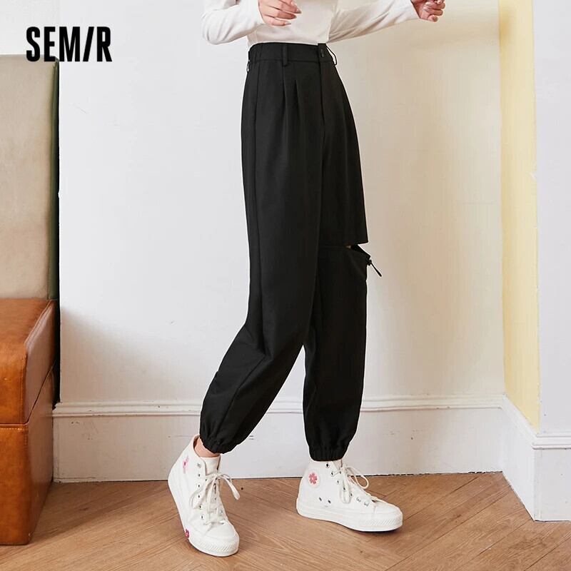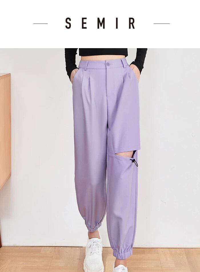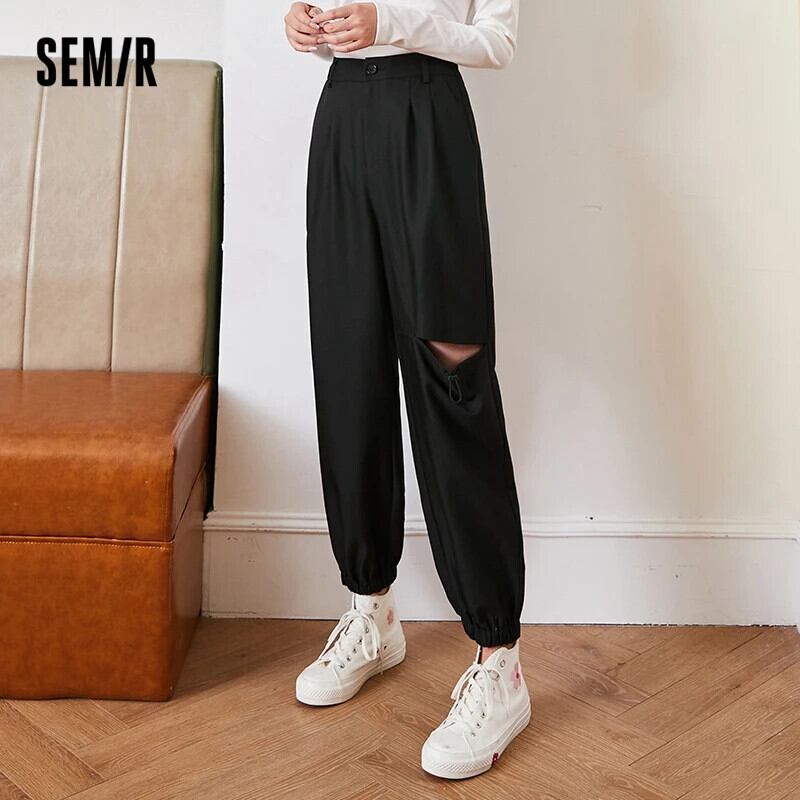 送料無料 Semir 2021 冬の女の子の個性トレンド穴ソリッドカラーの耐摩耗性弾性脚ストレートパンツ女性 エラスティック 伸縮 ウィンター 冬物 AE121277771073916741