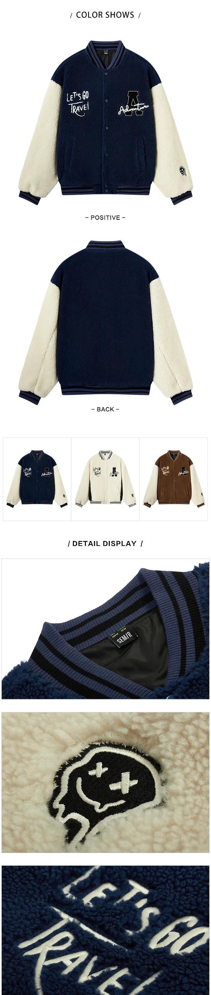 送料無料 Semir ジャケット男性冬模造ラムウール暖かいルーズ野球刺繍コントラストカラーデイリージャケット レッド ウィンター 冬物 AE1212777712474565951