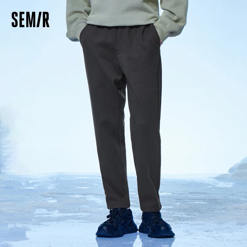 送料無料 Semir パンツ男性 2023 冬ソリッドカラーのテクスチャ毎日の通勤スタイルプラスベルベットテーパードパンツ レッド ウィンター 冬物 AE1212777753165808247