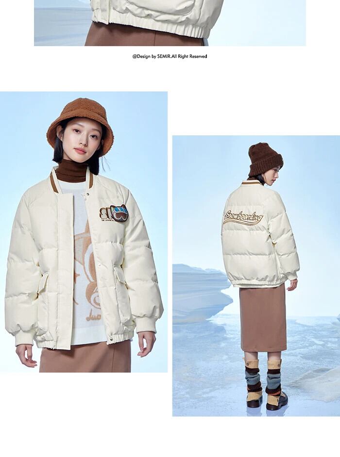送料無料 Semir ダウンジャケット女性ラグラン袖ルーズ防風防雨 2023 冬の野球襟ジャケット ウィンター 冬物 AE1212777711386036223