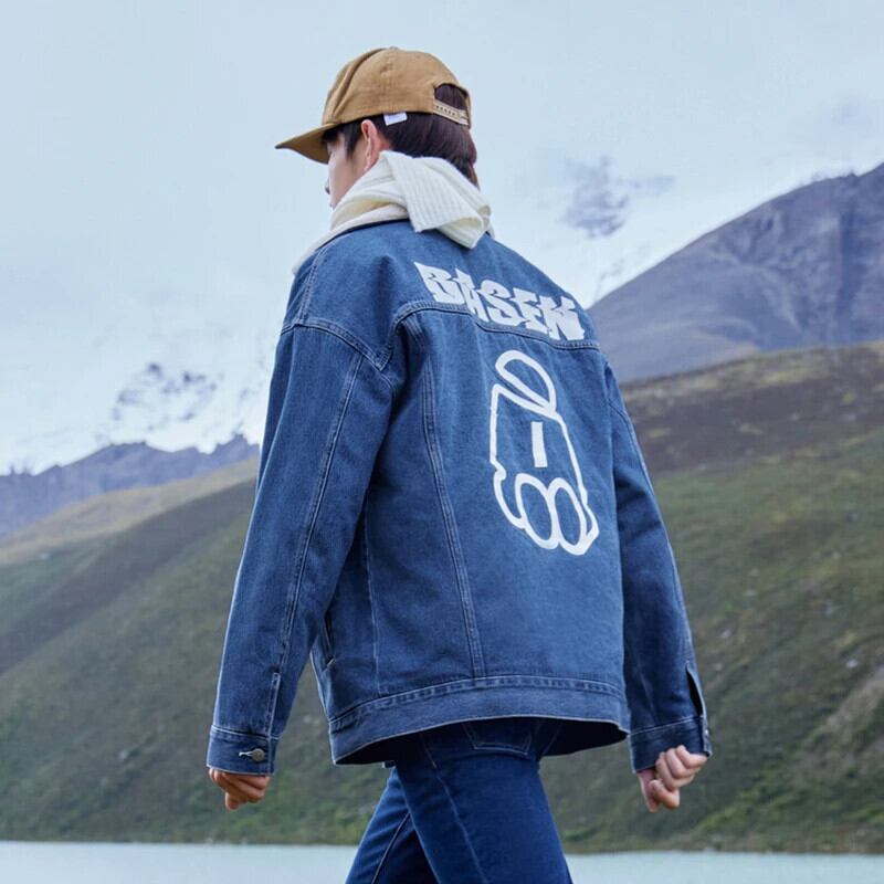 送料無料 Semir ジャケット男性冬漫画プリント 2023 フェイクラムウールラペルジャケット ウィンター 冬物 AE1212777774947629724