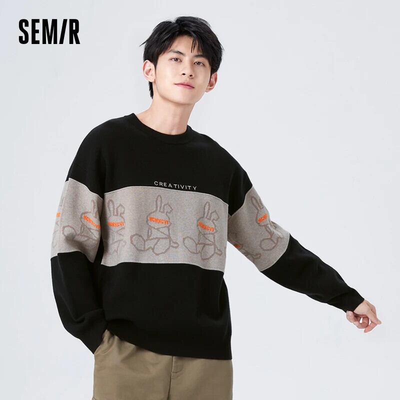 送料無料 Semir プルオーバーセーター男性冬アートウサギジャカード Comtable 暖かいルーズニットセーター ウィンター 冬物 AE1212777713847961971