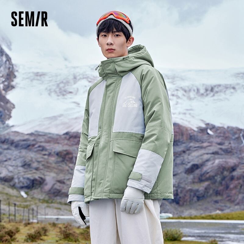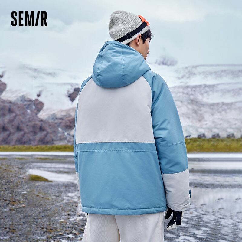 送料無料 Semir ジャケット男性 3 プルーフステッチコントラストカラー 2023 冬巾着フード付きルーズショート綿詰めジャケット コットン ウィンター 冬物 AE1212777719259528483
