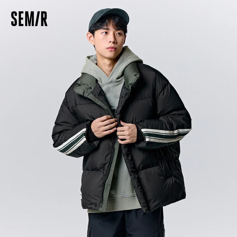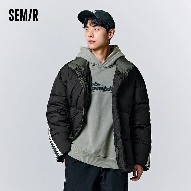 送料無料 Semir ダウンジャケット男性 2023 冬レトロコントラストカラーパンジャケットスポーツルーズジャケット ウィンター 冬物 AE1212777744043806002