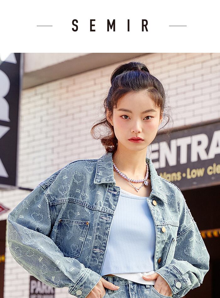 送料無料 Semir デニムジャケットの女性の愛甘いクール 2023 春と秋のルーズ生エッジジャケット人格 大人ガーリー スウィート キュート カジュアル スプリング 春物 オータム 秋物 AE1212777796433262524