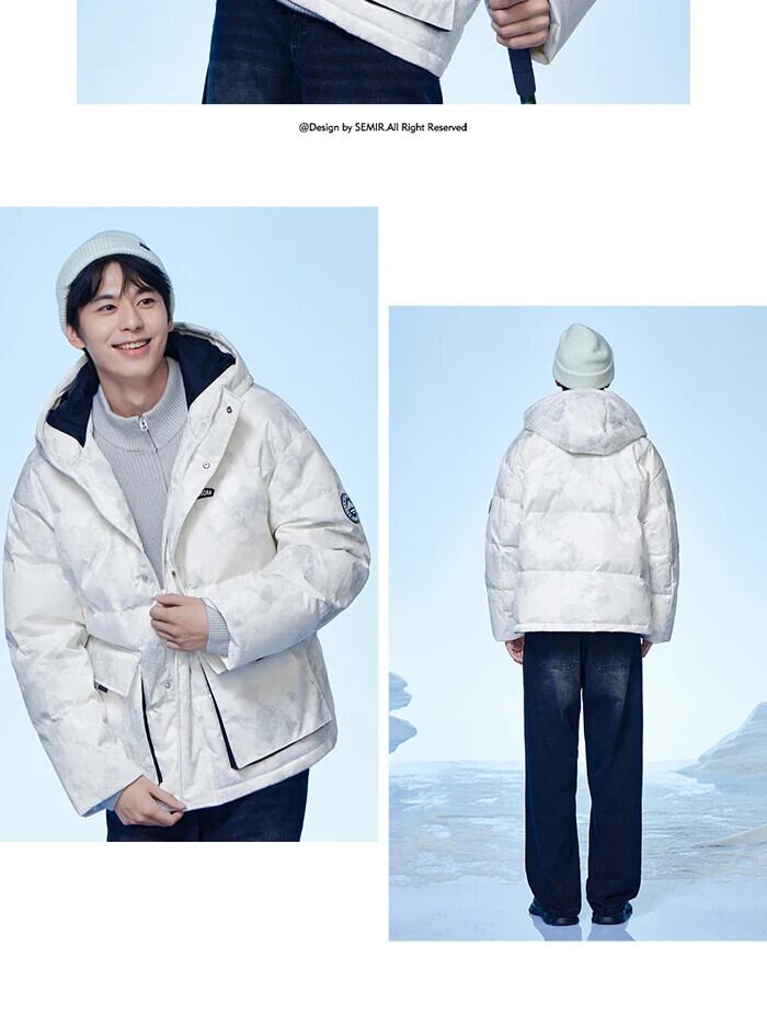送料無料 Semir ダウンジャケット男性 2023 冬テクスチャジャカード屋外雰囲気トレンド暖かいフード付きジャケット ウィンター 冬物 AE1212777786257812165