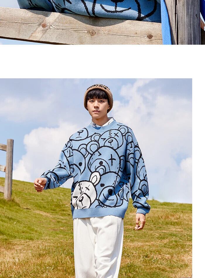 送料無料 Semir セーター男性冬の漫画クマジャカードルーズラウンドネックプルオーバー 2022 セーター ウィンター 冬物 Oネック AE121277776427928892