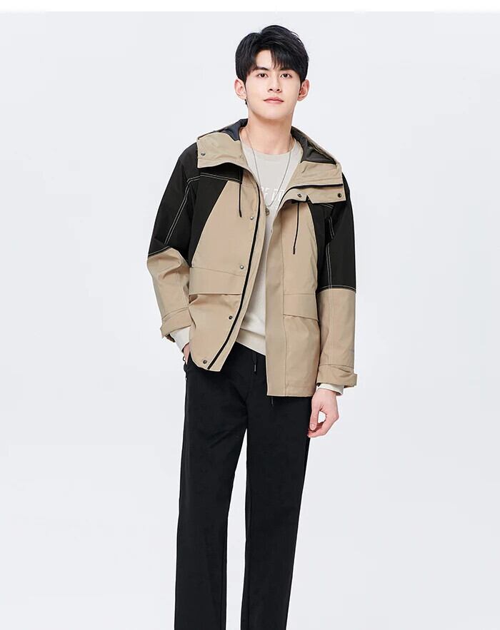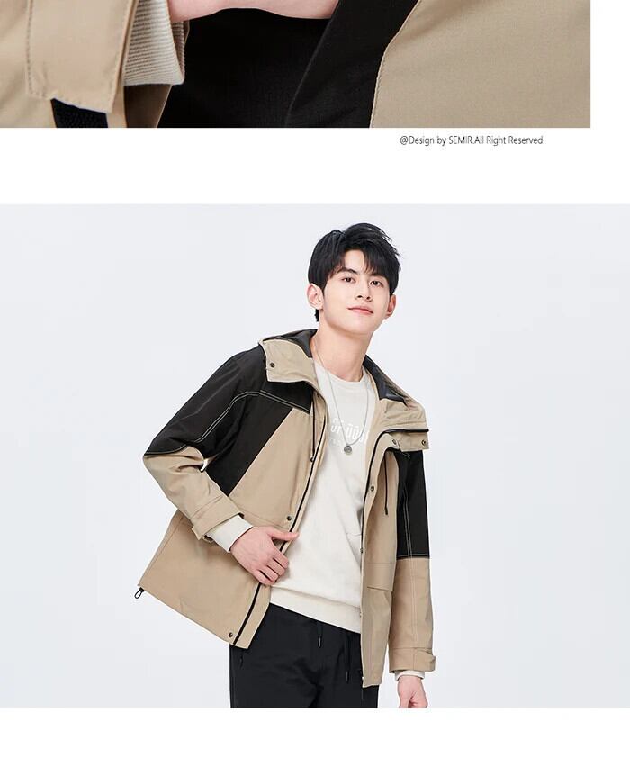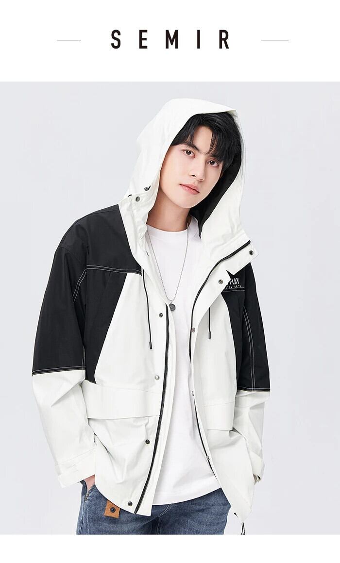 送料無料 Semir 男性服秋コントラストカラールーズ 3 プルーフ機能アウトドアスポーツフード付きコート男性 オータム 秋物 AE1212777767116820599
