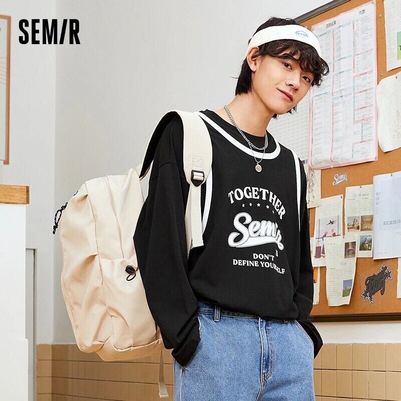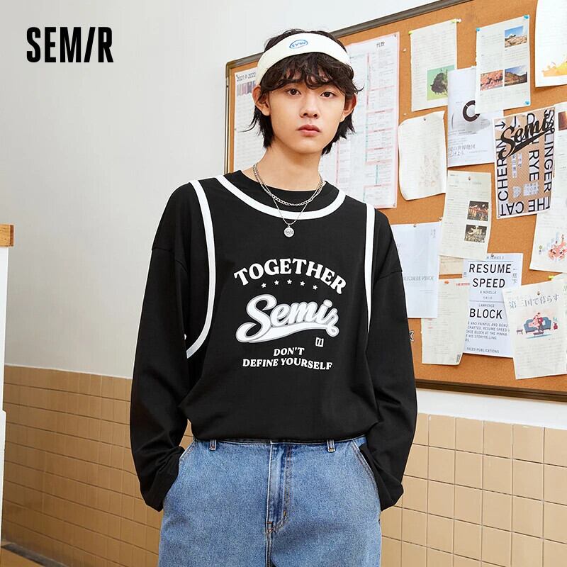 送料無料 Semir 長袖 Tシャツ男性秋の純粋な綿ルーズトレンディな Comtable Tシャツ ロング コットン オータム 秋物 ピュア AE1212777766716317762