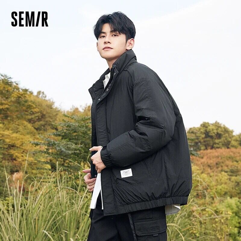 送料無料 Semir ダウンジャケット男性作業服リバーシブル冬レトロトレンディな黒肥厚パンジャケット ブラック ウィンター 冬物 AE1212777743184134665