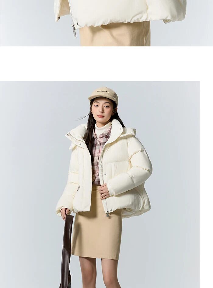 送料無料 Semir ダウンジャケット女性 2023 冬 Comtable ルーズフード付きジャケット ウィンター 冬物 AE1212777714909611207