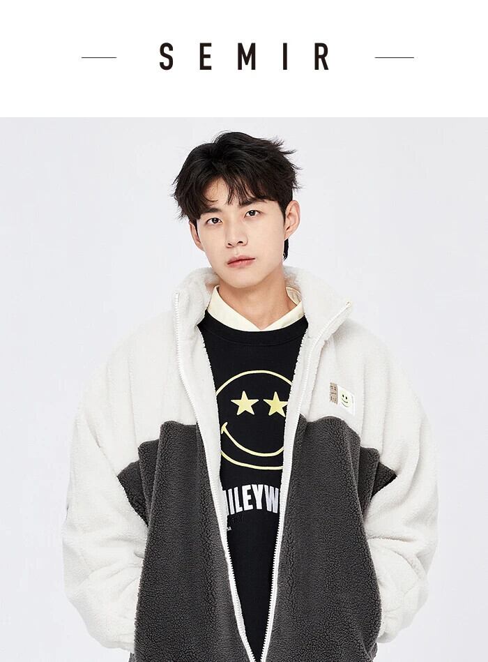 送料無料 Semir ジャケット男性 2023 冬ルーズレトロジャケット模造シェルパショートジャケット ウィンター 冬物 AE1212777785810330108