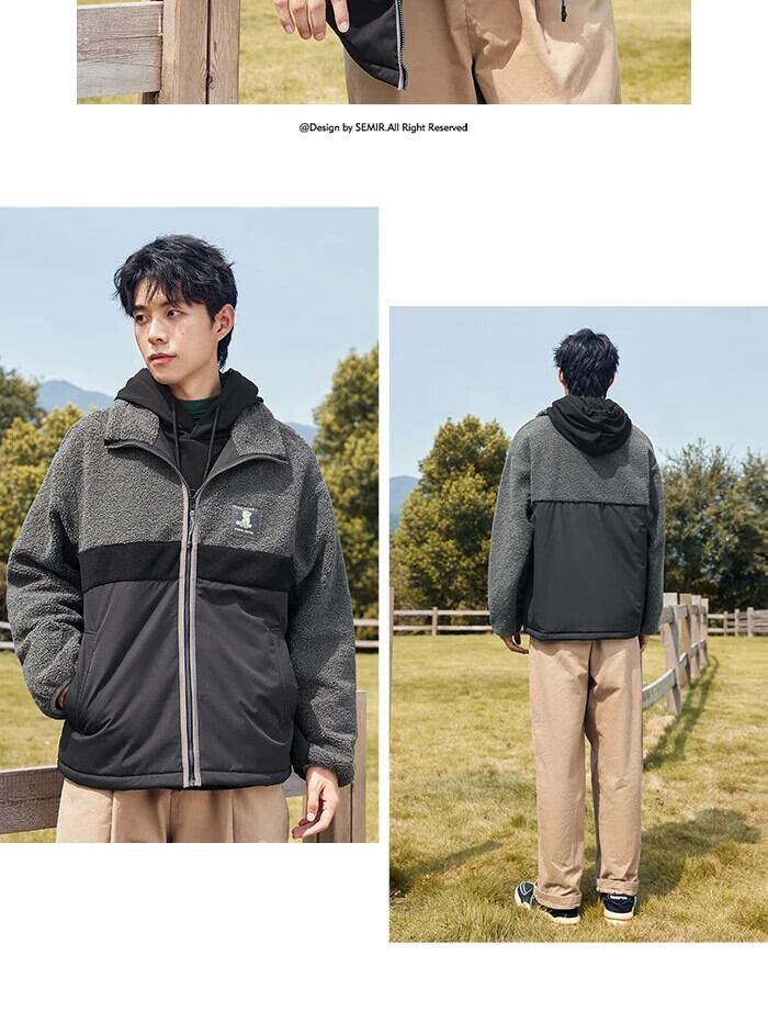 送料無料 Semir ジャケット男性 2023 冬緩いクールなステッチ模造羊ベルベットスプライシングトップ ウィンター 冬物 AE1212777747712207101