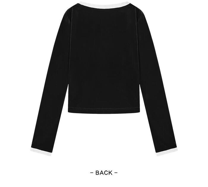 送料無料 Semir 長袖 Tシャツ女性ショートベルベットステッチレース 2023 冬のフレグランストップ ロング ウィンター 冬物 AE12127777516257163
