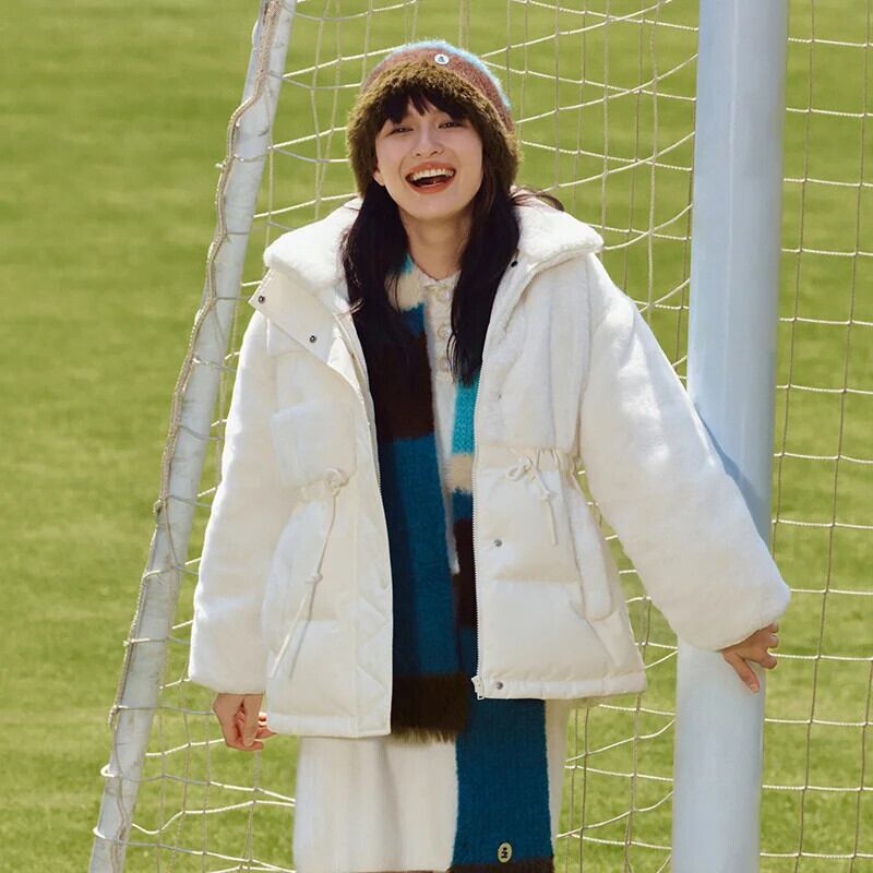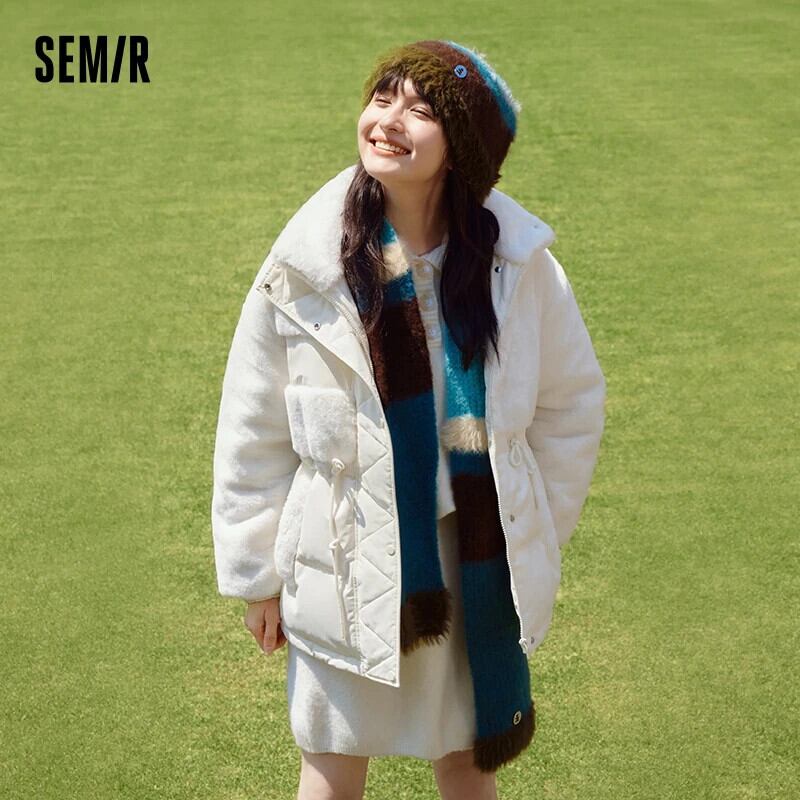 送料無料 Semir ダウンジャケット女性ミッドレングスルーススプライシング模造ウサギの毛皮 2023 冬スタンドアップカラーウエスト薄いジャケット ウィンター 冬物 AE1212777711052058935