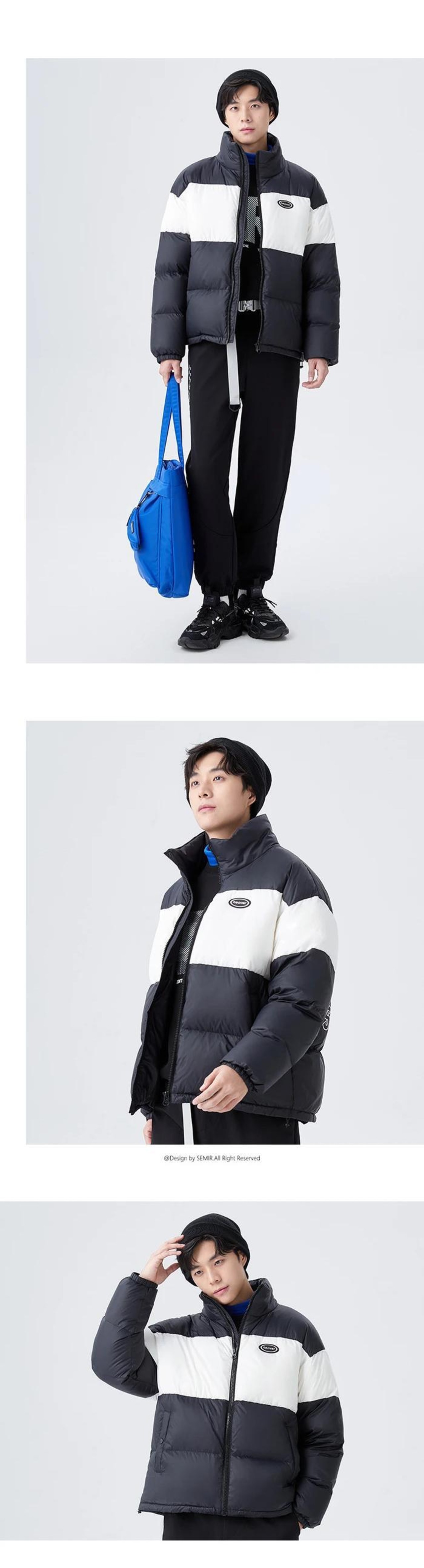 送料無料 Semir ダウンジャケット男性冬 Clic コントラストカラースプライシングレタープリントデイリールーズジャケット ウィンター 冬物 AE1212777784382557423