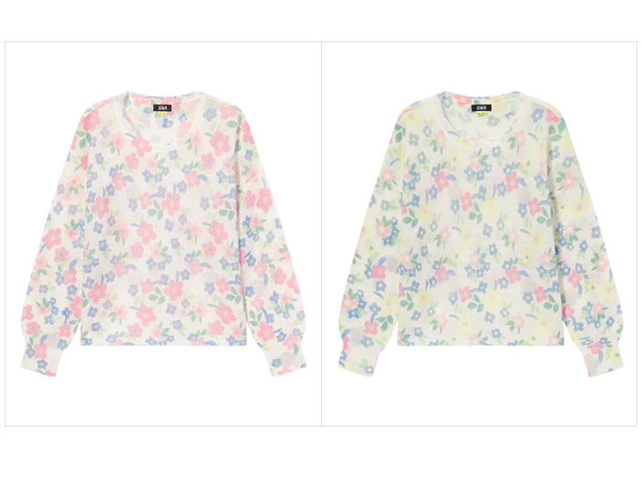 送料無料 Semir Knitwear 女性ロマンチックな花柄プルオーバー 2022 早春オーバーサイズ優しい風が強いセーター スプリング 春物 AE1212777758430643301
