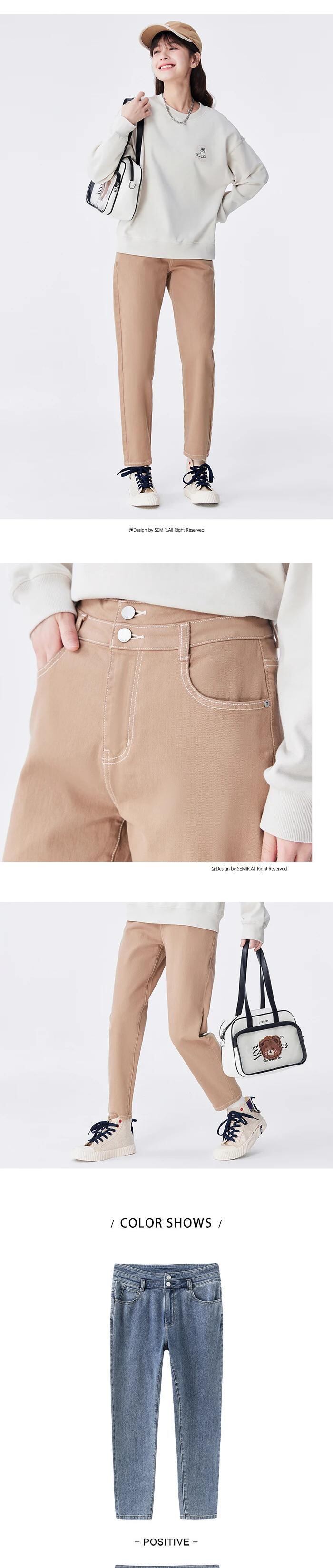 送料無料 Semir ジーンズ女性の背が高くて脚が長いクロップドパンツ秋のトップステッチが可能なテーパードパンツ ロング レッド オータム 秋物 AE1212777717836454344
