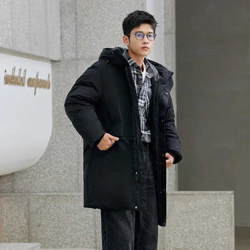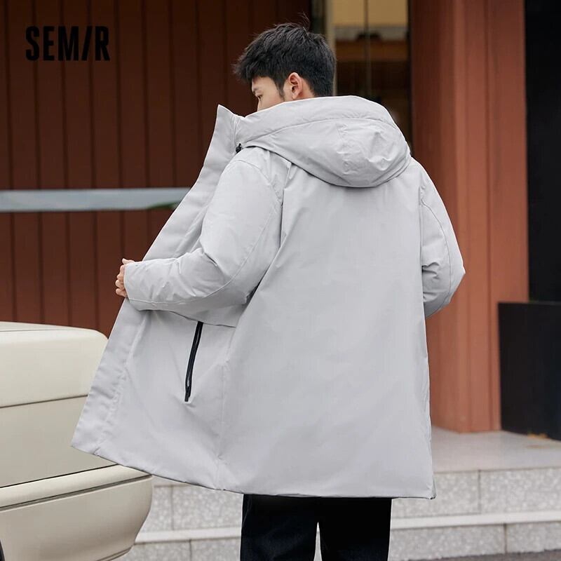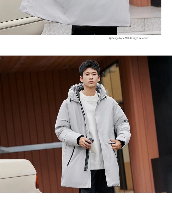 送料無料 Semir ダウンジャケットメンズ緩いミッドレングスコート冬デイリー厚いフード付き作業服スタイルジャケット ウィンター 冬物 AE1212777784490606174