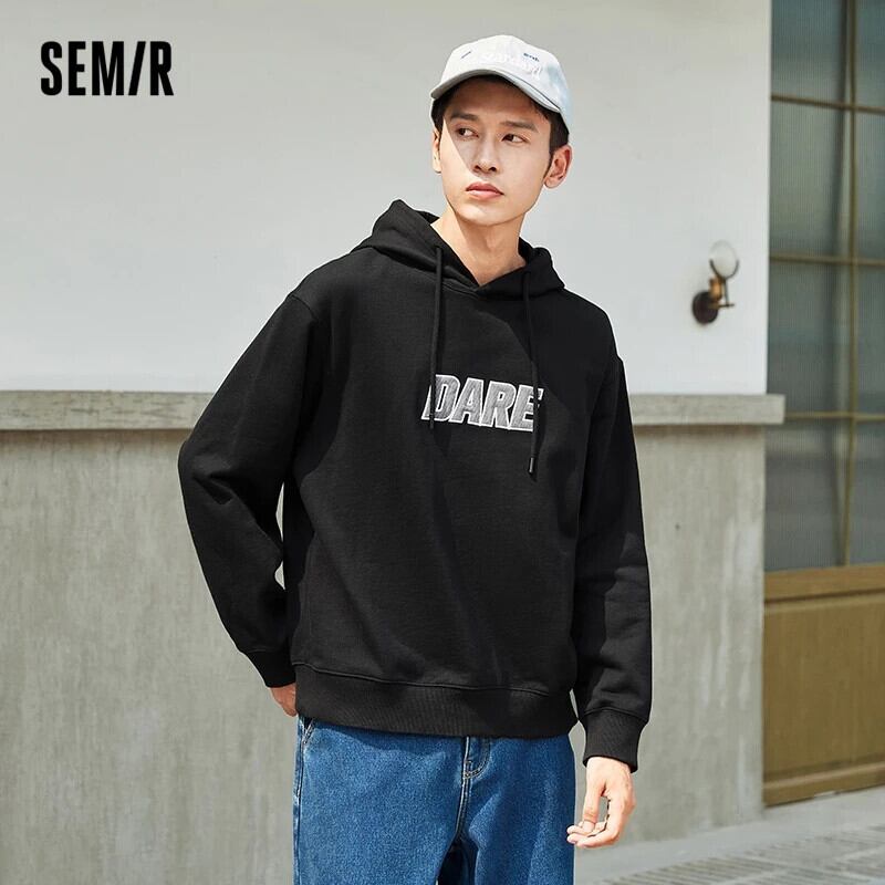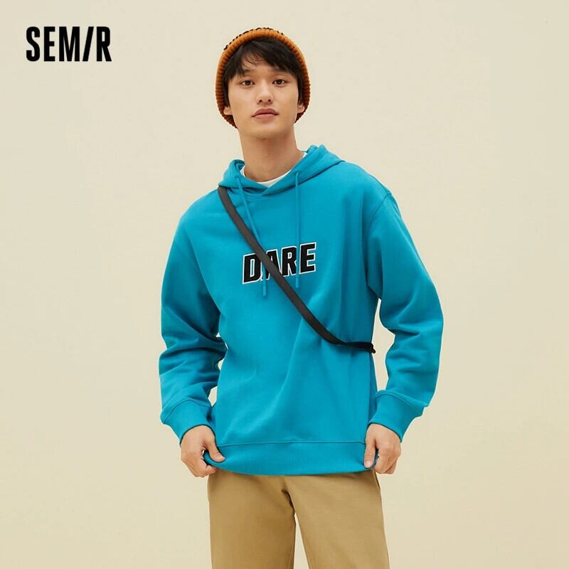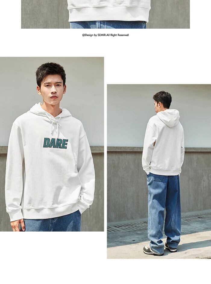 送料無料 Semir 男性トレーナー 2022 冬スタイル Comtable 暖かいフリーススポーツスタイル巾着フード付きレタリングパーカー ウィンター 冬物 AE1212777751496011497