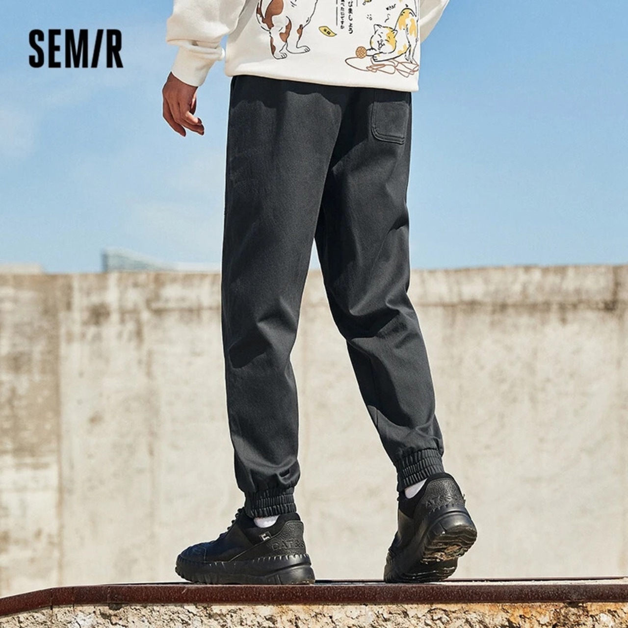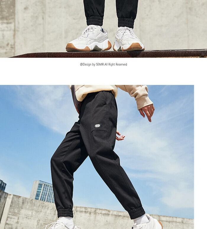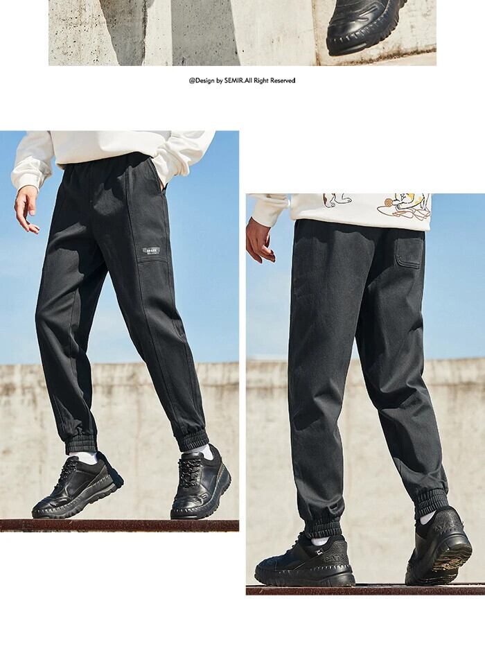 送料無料 Semir パンツ メンズ 2023 冬エネルギッシュ Comtable ジョギング弾性レッグタイ ブラック パンツ エラスティック 伸縮 ウィンター 冬物 AE1212777736109639582
