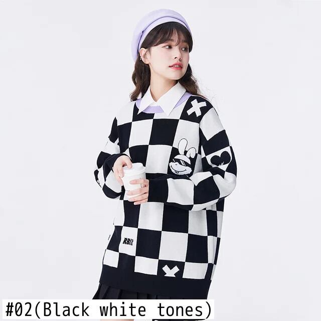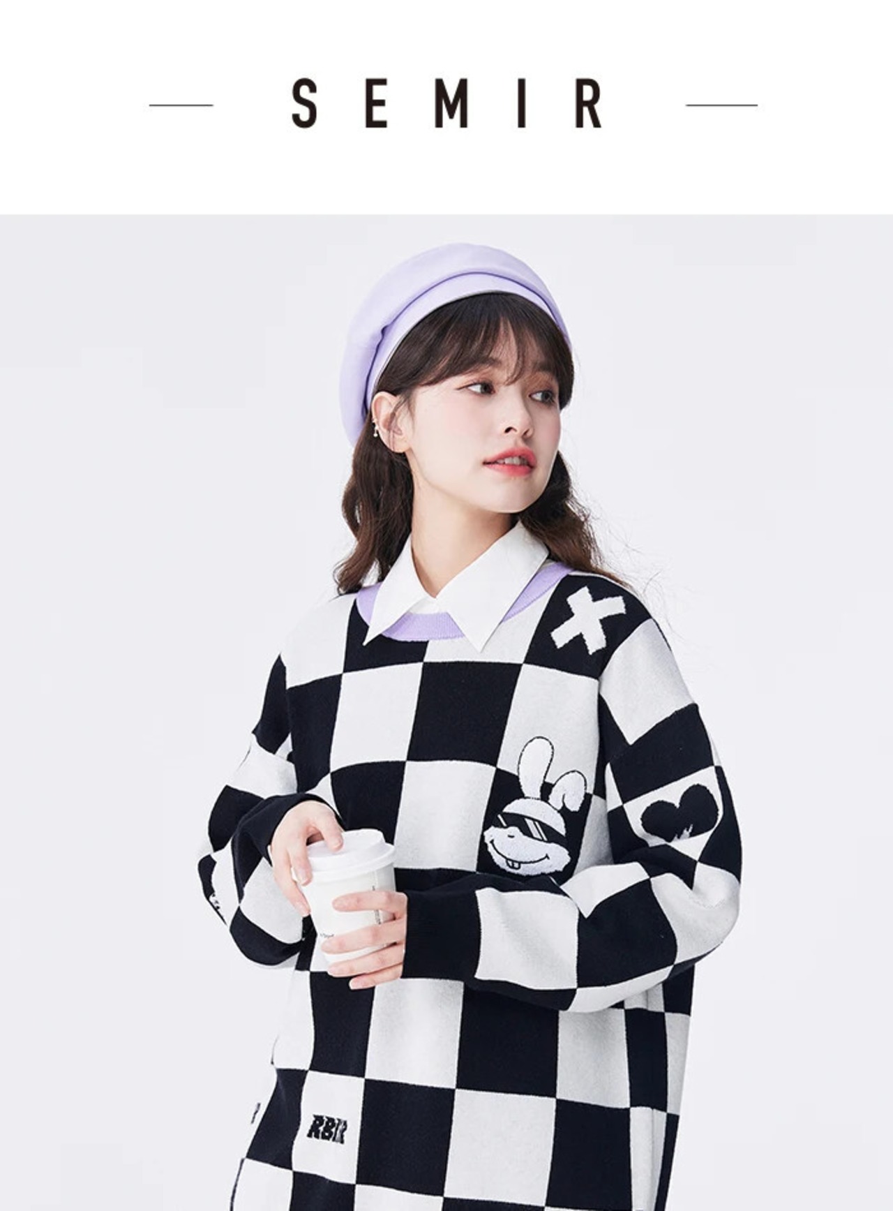 送料無料 Semir 女性セーター秋ミッドレングス特大市松プルオーバーウサギの刺繍ジャカードセーター女性 オータム 秋物 AE1212777763351440668